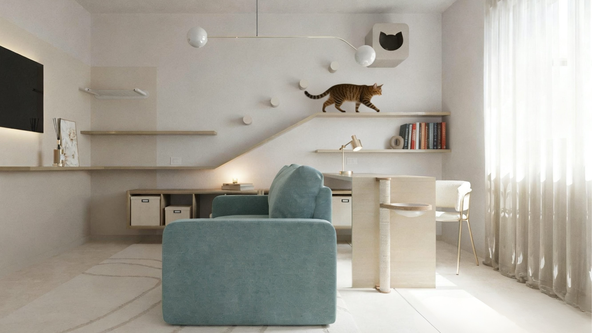 Un progetto di interior design su misura per una persona con esigenze speciali e una famiglia felina con lo scopo di darle di nuovo libertà e autonomia dentro casa.